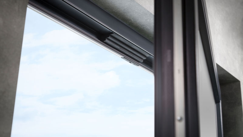 Das Smart Guard Modul ist im oberen Blendrahmen der Fenstersysteme GENEO und SYNEGO versteckt. Nach außen sorgen farblich passende Abdeckungen für die perfekte Integration.